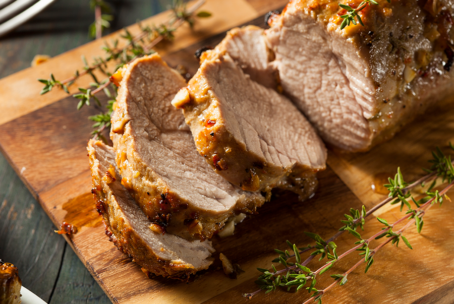 7. Coloque la bandeja para hornear en el horno y cocine hasta que la carne de cerdo alcance una temperatura interna de 145 ° F, aproximadamente de 25 a 30 minutos. Retirar del horno y dejar reposar.