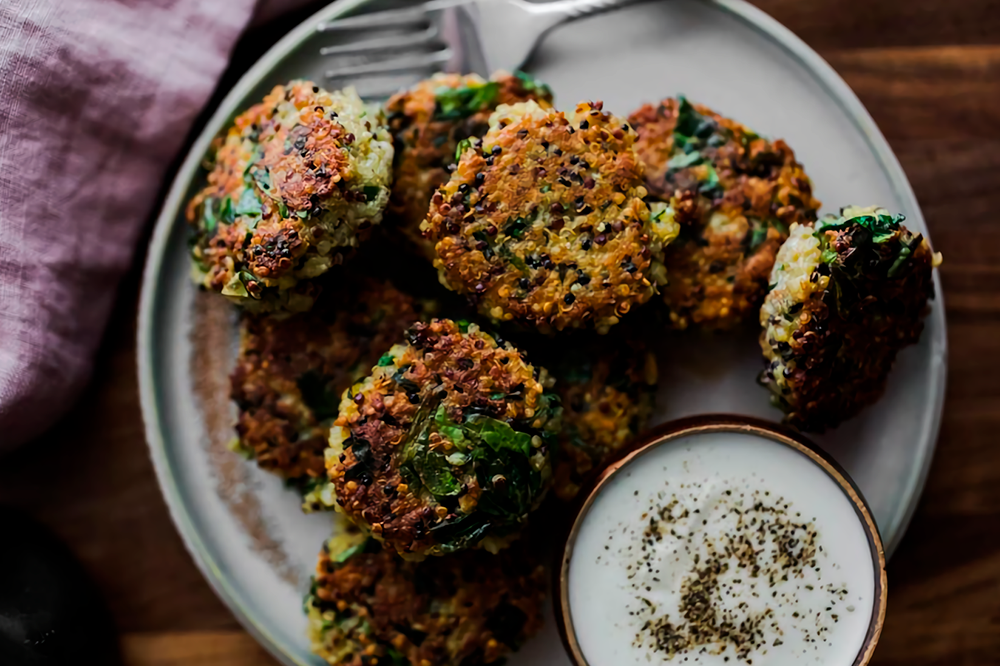 Estos pasteles de quinoa son nutritivos y suficientes para un tiempo de comida. No contienen gluten y están elaborados con ingredientes esenciales, gracias a la col rizada (kale), los tomates y la papa dulce. Con la quinoa, obtienes una gran dosis de proteína y los nueve aminoácidos.